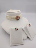 Pearl Choker Necklace Sets – Elegant multi-strand pearl chokers adorned with a statement gemstone brooch and matching stud earrings. Perfect for weddings, parties, or formal celebrations.